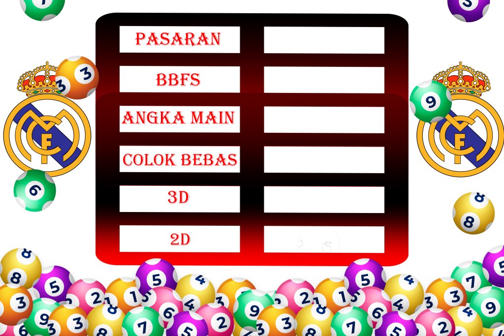 Agar teman-teman selalu bisa mengikuti undian bersama kami. Di bawah ini kami telah merangkum angka pasti togel 2D, 3D, dan 4D yang bisa dibolak-balik atau dibeli langsung seperti angka prediksi kami. Berikut prediksi Madrid hari ini: