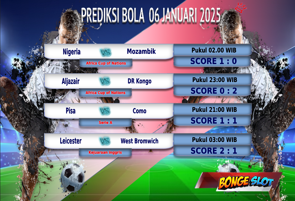 Bongeslot - Prediksi Bola 06 Januari